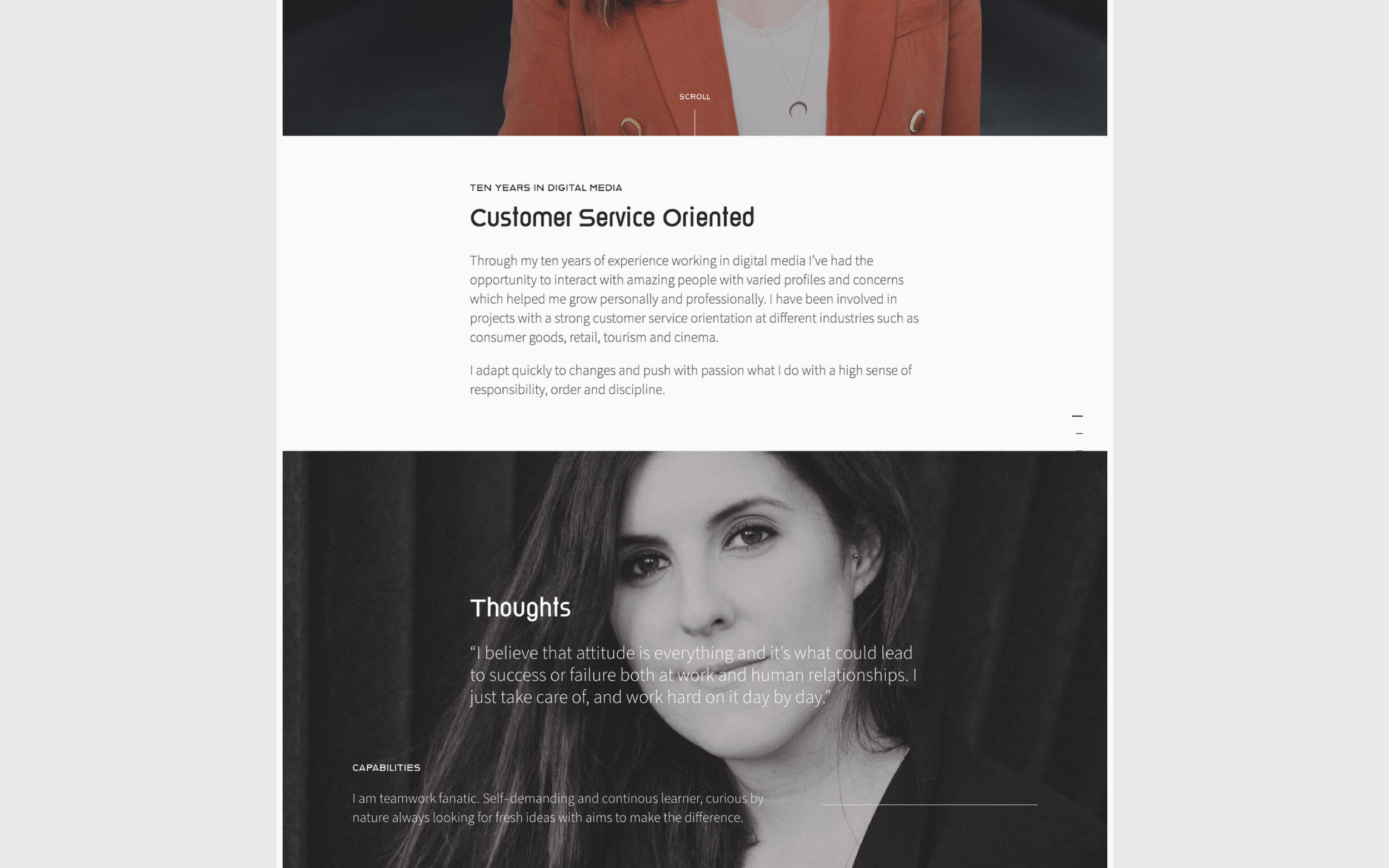 Currently not available online. The challenge here was to create a solid personal branding that show off her professional image, based on bold elements as a fine font pairing, accessible color scheme and professional portraits.