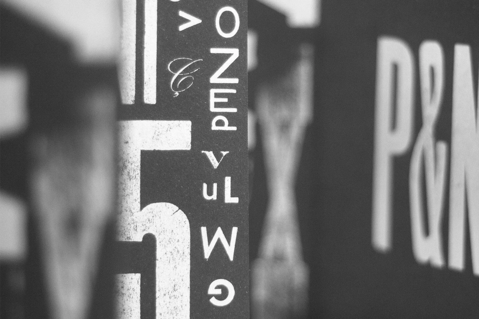 Manual typesetting combining wood and lead fonts from a stunning design history legacy.